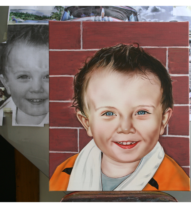He is particularly good at realistic portraits painting : Using new painting techniques, oil painting techniques combined with airbrush painting techniques.