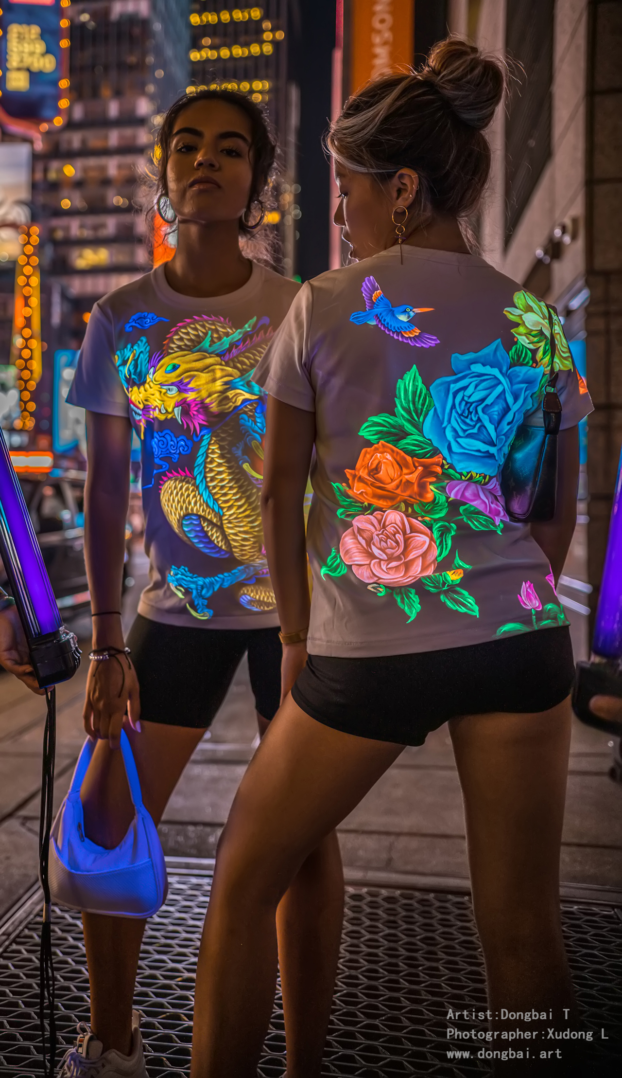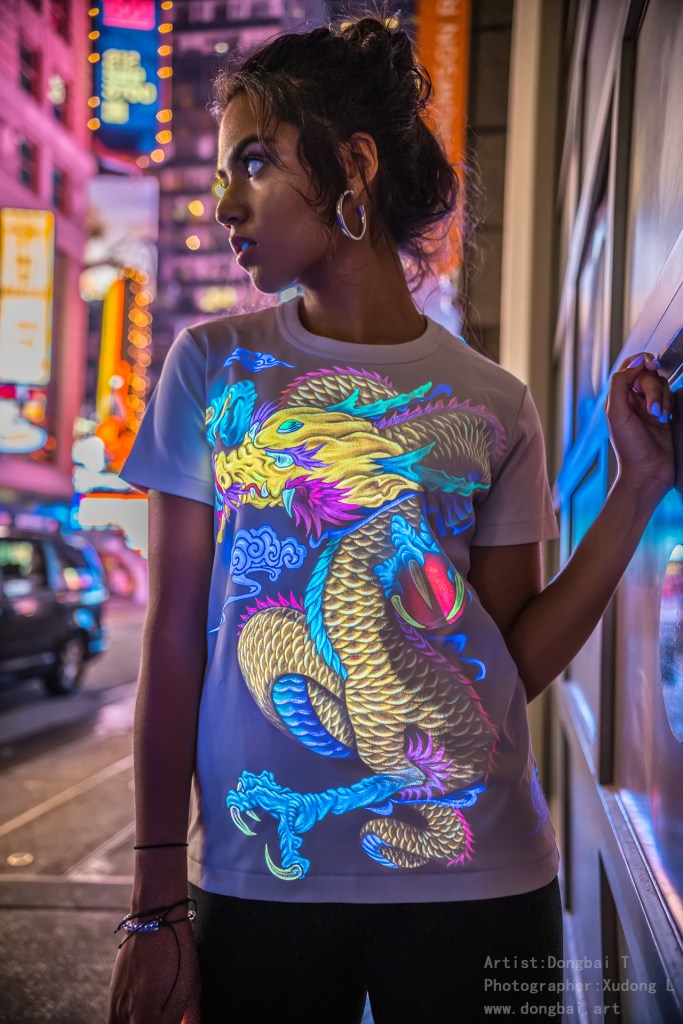 Dongbai Tang is an artist who likes to challenge, and he uses special glowing UV paint and art techniques to create a gorgeous painting on clothes.